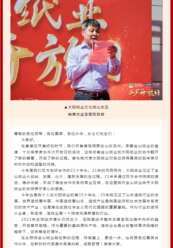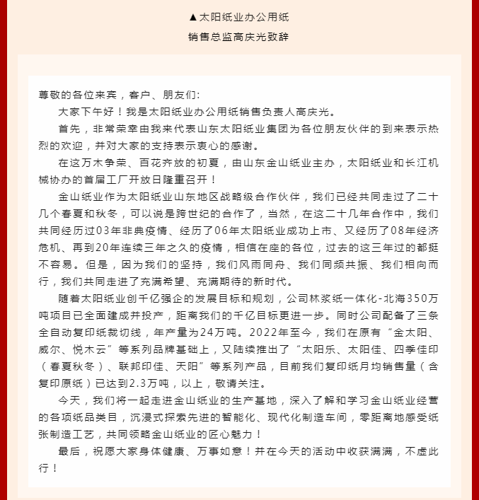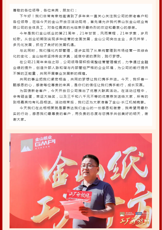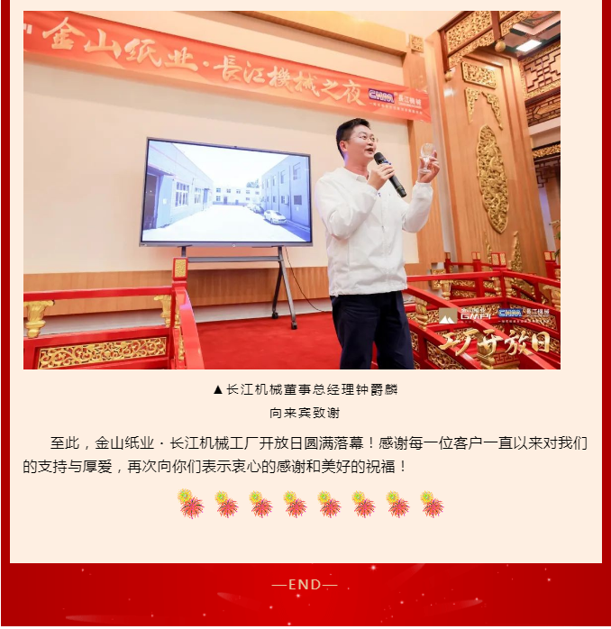 攜手并進(jìn) 共創(chuàng)未來(lái)丨熱烈祝賀金山紙業(yè)?長(zhǎng)江機(jī)械工廠開(kāi)放日?qǐng)A滿舉辦